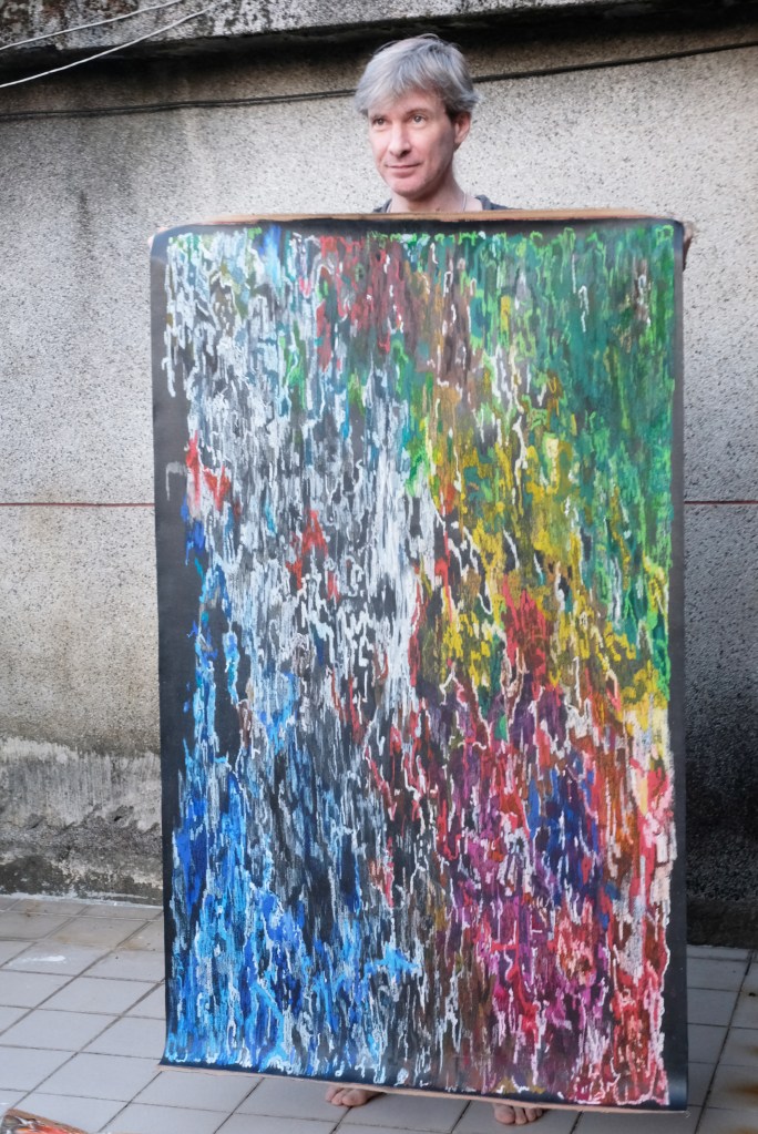 沒有做飾品的時候,Philippe花上很多時間作畫,來台灣5年了,他已經畫出上百幅。在畫畫時,他習慣一個人裸體在自己的空間裡,不受外界打擾,回到與自己相處,專注在眼前的畫布與顏料。對Philippe而言,創作就是屬於他的靜心時刻,畫畫也如同他的冥想儀式。從自己生活裡,找到一件能舒心平穩的事情,那就能成為你的自我療癒力。