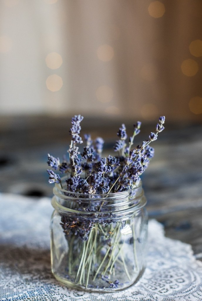 - 以1枝薰衣草為圓心,其他8枝圍繞著中央排列。