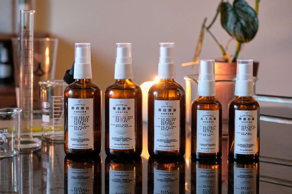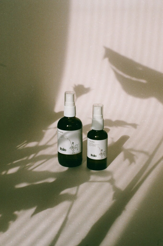 走進ITSIO的產地,位居老公寓裡的面窗和室,兩張桌子兩件櫃子各處一角,櫥櫃裡瓶罐條列存放,器皿有序擺設,物品與人之間有餘韻的相處。當午後陽光照射入內、輕快的風透著大自然的運轉,流淌透淨的能量,讓人可以靜靜待上許久。在這片空間孕育而生的噴霧,也彷彿將舒暢氣息裝填瓶中,直送一幕美好的願景。